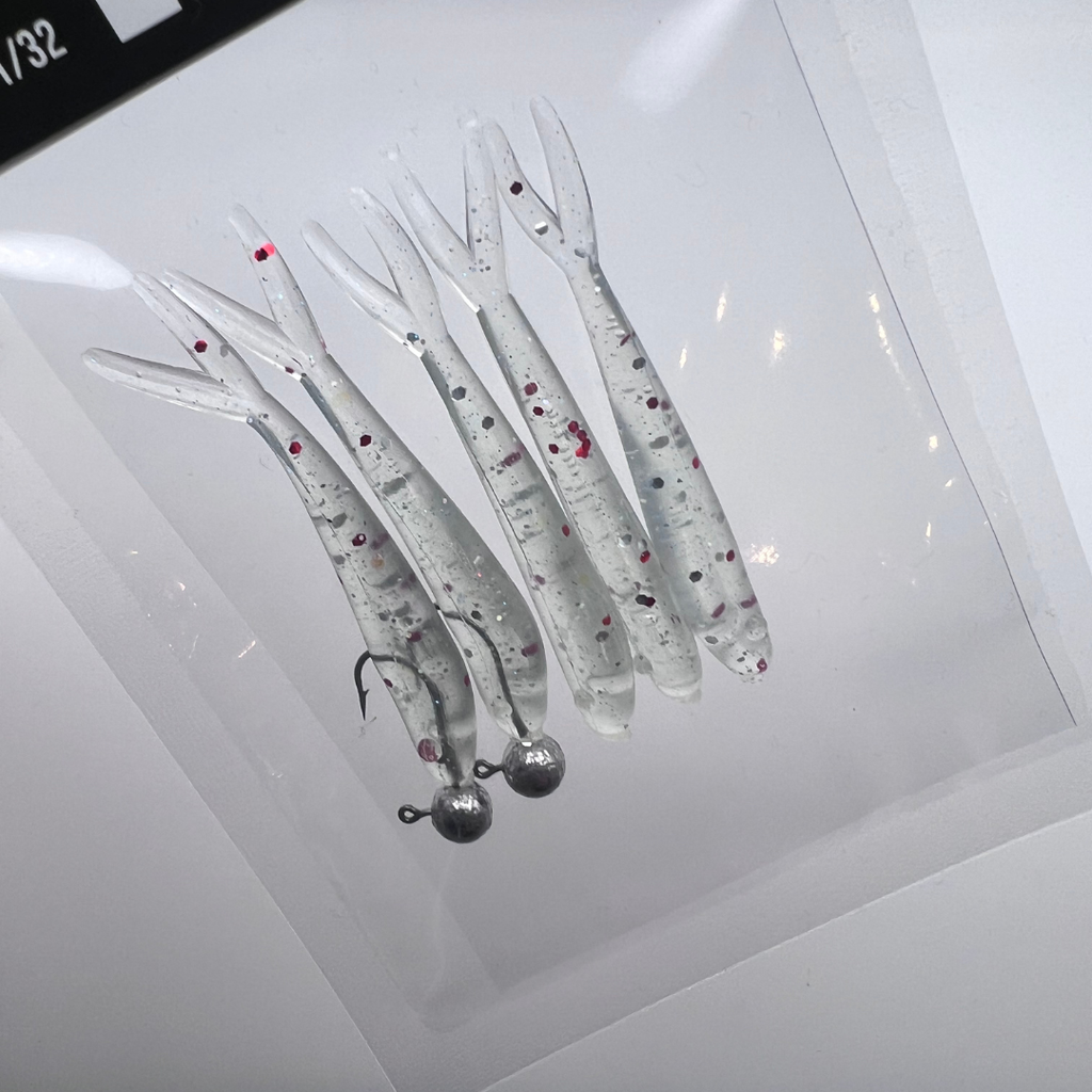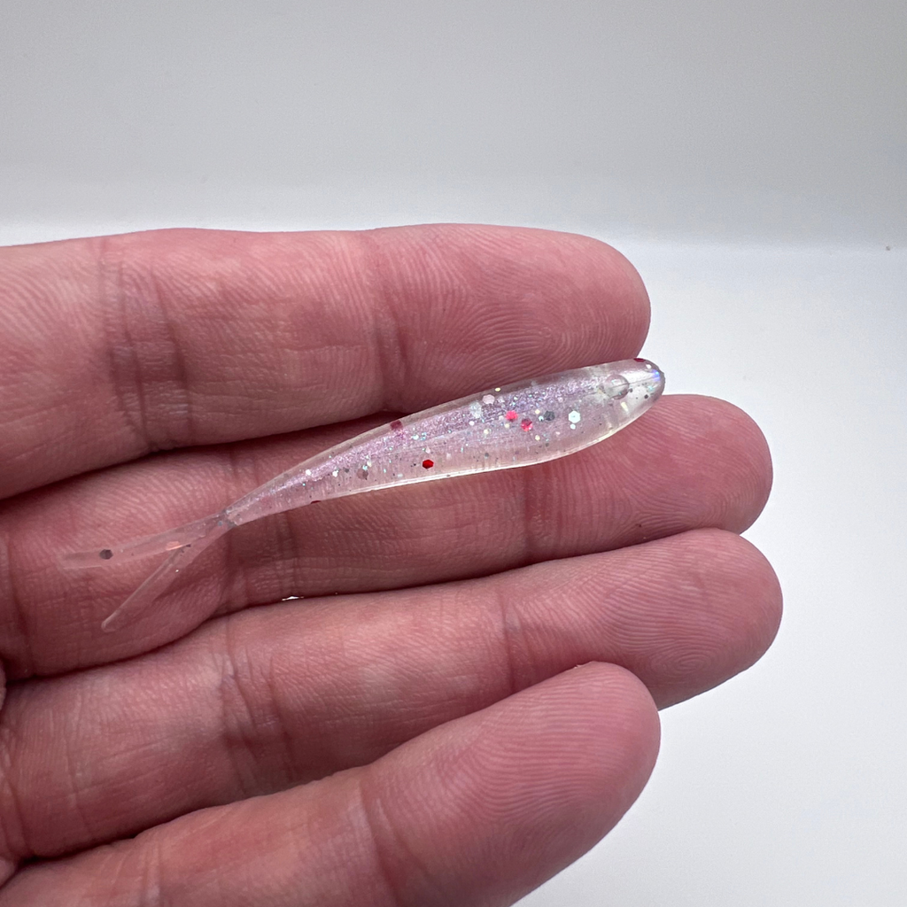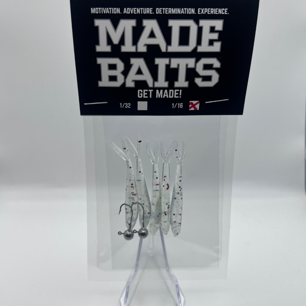 RAINBOW WARRIOR is a true homage to one of the most proven trout flies of all time—reimagined in soft plastic and built the MADE way. This bait mirrors the hand-tied original with a clear, translucent body loaded with rainbow pearls, layered highlights, and fine flake that comes alive in the water. The oversized red flake hotspot is intentional, bold, and unmistakable—just like the fly that’s fooled trout everywhere.